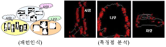 이번에 개발된 감시경계로봇은 야간에 어두운 상황에서도 물체를 컬러 동영상으로 인식할 수 있어 이스라엘 등에서 개발, 시판하고 있는 감시장비보다 뛰어난 기술인 것으로 평가되고 있다. 또 이 로봇은 현재까지의 감시장비와 달리, 감시기능과 더불어 추적, 제압기능이 일체형으로 구성돼 활용성이 더욱 높아진 것이 특징이다. 이같은 영상인식기술로 주간 4km, 야간 2km의 거리에 있는 움직이는 물체를 자동 탐지하고 주간 2km, 야간 1km의 거리에서는 로봇이 이를 사람, 차량 등으로 구분 가능하다. ◆감시경계로봇 형상인식 패턴