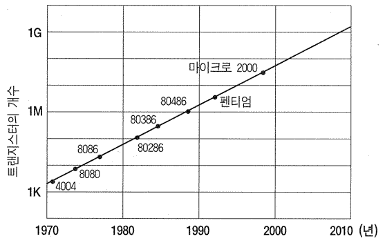 ±â¼ú»óÀÇ ¹ßÀü¿¡ ´ëÇÑ ¿¹»óÀº Á»´õ ¹ÏÀ» ¸¸ÇÑ °ÍÀ¸·Î °£ÁֵǾú´Ù. Ưº°È÷ ¹ÝµµÃ¼»ê¾÷¿¡¼´Â '¹«¾îÀÇ ¹ýÄ¢' À̶ó ºÒ¸®´Â ÀÌ·ÐÀÌ ³Î¸® ÀÎÁ¤µÇ°í ÀÖ´Ù. 1965 ³â¿¡ ¹«¾î (Gordon Moore) ´Â »õ·Î¿î ¹ÝµµÃ¼ Ĩ (chip) ÀÌ 18 ~ 24°³¿ù »çÀÌ¿¡ ³ªÅ¸³ª¸ç, ¼º´ÉÀÌ ÀÌÀüÀÇ °Íº¸´Ù ¾à µÎ ¹è Áõ°¡ÇÑ´Ù´Â »ç½Ç¿¡ ÁÖ¸ñÇß´Ù. ÀÌ·¯ÇÑ °æÇâÀº ±×¸² 3 ¿¡¼ º¼ ¼ö ÀÖÀ¸¸ç ¸Å¿ì Á¤È®ÇÑ °ÍÀ¸·Î º¸ÀδÙ. ÆæÆ¼¾ö Åõ (Pentium ¥±) ÇÁ·Î¼¼¼¿Í 64¸Þ°¡µð·¥ °¢°¢Àº ¾à 750 ¸¸ °³¿Í 6400 ¸¸°³ÀÇ Æ®·»Áö½ºÅÍ·Î ±¸¼ºµÇ¾î ÀÖÀ¸¸ç ¾à 50 ¹èÀÇ Áõ°¡ºñÀ²ÀÌ ´ÙÀ½ 10 ³â µ¿¾È ±â´ëµÈ´Ù. 10 ¾ï °³ ÀÌ»óÀÇ Æ®·£Áö½ºÅÍ·Î °¡Áö°í ÀÖ´Â ÇϳªÀÇ Ä¨Àº Àΰ£ÀÇ ³ú±â´É Áß ÀÛÀº ºÎºÐÀ» ´ã´çÇÒ ¼ö ÀÖ´Ù. Á»´õ °·ÂÇÑ ½Ã½ºÅÛÀº ¿©·¯ °³ÀÇ Ä¨À» ¿¬°áÇÏ¿© ¸¸µé ¼ö ÀÖ´Ù. Á¤ÅëÀûÀÎ Æù ³ëÀ̸¸ (von Neumann) Àü»ê±¸Á¶¿¡¼´Â ÇÁ·Î¼¼¼¿Í ¸Þ¸ð¸® »çÀÌÀÇ Åë½Å º´¸ñÇö»óÀÌ Á¡Á¡ ´õ ½É°¢ÇØÁú °ÍÀ̹ǷΠºÐ»êµÈ °è»ê°ú ÀúÀ屸Á¶°¡ ¿ä±¸µÈ´Ù. µû¶ó¼ ³úÁ¤º¸Ã³¸® ¸ÞÄ¿´ÏÁò¿¡ ±â¹ÝÇÑ ½Å°æÈ¸·Î¸Á Ĩ ±â¼úÀÌ ÄÄÇ»ÅÍ¿Í ¹ÝµµÃ¼»ê¾÷ÀÇ ÁÖ¿äÇÑ È帧À» Çü¼ºÇÒ °ÍÀÌ´Ù.