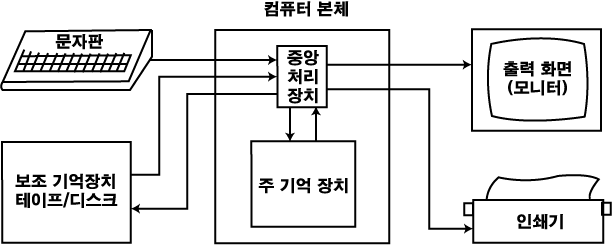 "Çϵå¿þ¾î (hardware)" ¶ó´Â ¿ë¾î´Â ÄÄÇ»ÅÍ ¸öü ÀÚü¿Í ÀÔ·ÂÀ» À§ÇÑ ¹®ÀÚÆÇ, ȸé°ú Ãâ·ÂÀ» À§ÇÑ Àμâ±â ±×¸®°í ÀԷ°ú Ãâ·Â ¸ðµÎ¸¦ À§ÇÑ 'º¸Á¶' (passive) ¶Ç´Â ¿ÜºÎ ±â¾ï Å×ÀÌÇÁ/µð½ºÅ©/µå·³ µî°ú °°Àº ÁÖº¯ ÀåÄ¡µéÀ» °¡¸®Å°´Â ¸»ÀÌ´Ù (±×¸² 1). ÀÌ ¸»Àº "¼ÒÇÁÆ®¿þ¾î" (software) ¶ó´Â ¿ë¾î¿Í ´ëÁ¶µÇ´Â °ÍÀε¥, ¼ÒÇÁÆ®¿þ¾î´Â Çϵå¿þ¾î°¡ ¹«¾ùÀ» ÇÒ °ÍÀÎÁö¸¦ ¾Ë·Á ÁÖ´Â ÀÏ·ÃÀÇ Áö½Ã »çÇ×µéÀ» ³ªÅ¸³»´Â ¸»ÀÌ´Ù.