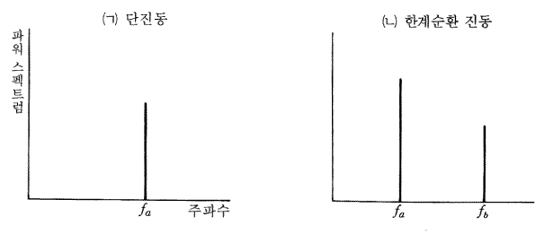 Ǫ¸®¿¡ ÇØ¼®À» ¾Ë±â ½±°Ô ¼³¸íÇϱâ À§ÇØ µµÇ¥·Î ³ªÅ¸³» º¸ÀÚ (À̰ÍÀ» ½ºÆåÆ®·³µµ¶ó°í ºÎ¸¥´Ù). À̶§ °¡·ÎÃàÀº Á֯ļö¸¦, ¼¼·ÎÃàÀº ÆÄ¿ö ½ºÆåÆ®·³À» ³ªÅ¸³½´Ù. ¿ì¼± °¡Àå °£´ÜÇÑ Áøµ¿ÀÎ ´ÜÁøµ¿À» ÆÄ¿ö ½ºÆåÆ®·³µµ·Î ³ªÅ¸³»º¸¸é, ´ÜÁøµ¿Àº ´Ü ÇϳªÀÇ Á֯ļö fa ¸¸À» °®±â ¶§¹®¿¡ ±×¸² 55 (¤¡) °ú °°ÀÌ ´Ü ÇϳªÀÇ ¼¼·Î ¼±ºÐ¸¸ÀÌ ±×·ÁÁø´Ù. ¿©±â¿¡¼ ¼±ºÐÀÇ ±æÀÌ´Â ÁøÆøÀ» ³ªÅ¸³½´Ù (¶Ç´Â ±âº» Á֯ļöÀÇ ¼ººÐ¼ö¸¦ ¶æÇÑ´Ù). µÎ °³ÀÇ ÁÖ±â fa, fb ¸¦ °®´Â ÇÑ°è¼øÈ¯ Áøµ¿¿¡¼´Â ±×¸² 55 (¤¤) ó·³ µÎ °³ÀÇ ¼±ºÐÀÌ ±×·ÁÁø´Ù. Áï, ½ºÆåÆ®·³ ºÐÆ÷´Â ºÒ¿¬¼ÓÀûÀÌ´Ù.