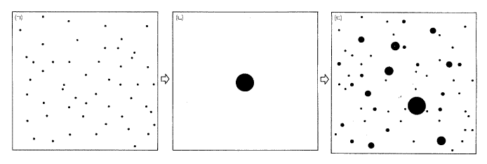 ÀÌ ¼·Î ¹Ý´ëµÇ´Â °æÇâÀº °æÀïÀ» ÇÏ´Ù°¡ ±ÕÇüÀ» À¯ÁöÇÏ°Ô µÇ¾î ÀüüÀûÀ¸·Î Ŭ·¯½ºÅÍ¿Í ÀÔÀÚÀÇ ¼ö´Â °ÅÀÇ º¯ÇÔÀÌ ¾ø°Ô µÈ´Ù. ±×¸®°í Ŭ·¯½ºÅÍÀÇ Å©±â ºÐÆ÷´Â Á¤»ó ºÐÆ÷°¡ µÈ´Ù. ÀÌ·± ½ÄÀ¸·Î ¸¸µé¾îÁø Ŭ·¯½ºÅÍÀÇ ºÐÆ÷´Â ÇÁ·¢Å»ÀÌ µÈ´Ù. ÀÌ·¯ÇÑ ½Ã½ºÅÛÀ» ¿ì¸®´Â 'ºñÆòÇü°³¹æ°è' ¶ó°í ºÎ¸¥´Ù. ¿Ö ºñÆòÇüÀÌ³Ä Çϸé, ÀÔÀÚ¸¦ °è¼Ó °ø±ÞÇØ ÁÖ¸é ±× ÀÔÀÚ°¡ °è¼Ó Ŭ·¯½ºÅÍ¿¡ Èí¼öµÇ¾î »ç¶óÁö±â ¶§¹®ÀÌ´Ù. ¾î¶² È帧ÀÌ ¸ØÃß¸é ÆòÇüÀÌ µÇ°í, È帧ÀÌ °è¼ÓµÇ¸é ºñÆòÇüÀÌ µÇ´Â °ÍÀÌ´Ù. ¿Àº ¶ß°Å¿î °÷¿¡¼ Âù °÷À¸·Î È帥´Ù. ±×·¯³ª, µÎ °÷ÀÇ ¿Âµµ°¡ °°¾ÆÁö¸é, ´õ ÀÌ»ó ÀÏÁ¤ÇÑ ¹æÇâÀ¸·ÎÀÇ ¿ÀÇ È帧Àº ¾ø°Ô µÈ´Ù. ÀÌ·± »óŸ¦ '¿ÀûÀ¸·Î ÆòÇü' ÀÎ »óŶó°í ºÎ¸¥´Ù.
