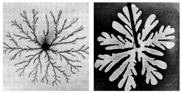 ±×¹Û¿¡ À̰°Àº Çö»óÀ» ³ªÅ¸³»´Â ¿¹´Â ¸¹´Ù. 'ºñ½ºÄ¿½º ÇΰŸµ'[viscous-fingering: Á¡¼º¿¡ ÀÇÇÑ ¼Õ°¡¶ô ¸ð¾çÀÇ Çü¼º, ±×¸² 60] µµ ±× ÇϳªÀÌ´Ù. À̰ÍÀº µÎ ÀåÀÇ À¯¸®ÆÇ »çÀÌ¿¡ ±â¸§À» ³Ö°í ÇÑ °¡¿îµ¥·Î °ø±â¸¦ ÁÖÀÔÇϸé, °ø±â°¡ ¼Õ°¡¶ô ¸ð¾çÀ¸·Î ±â¸§À» ¹Ð¾î³»°í ÆÛÁ®³ª°¡´Â Çö»óÀÌ´Ù.