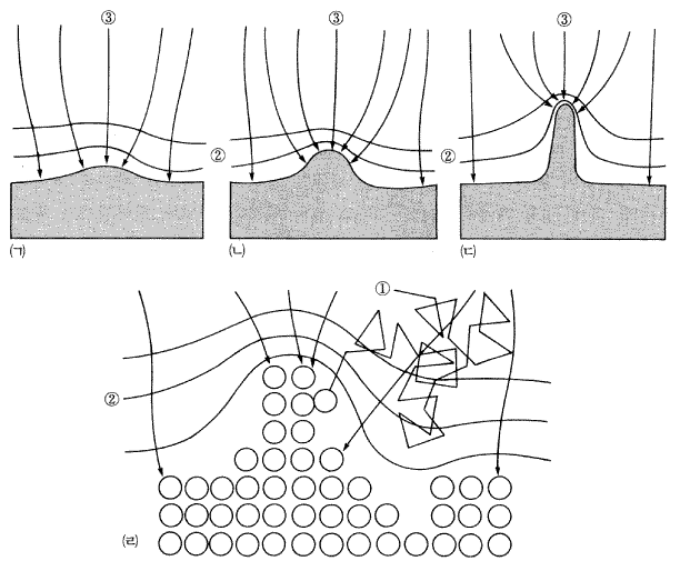 ¸¹Àº È®»ê ÀÔÀÚ°¡ ÀÀÁýÇÏ´Â ¾î¶² ¸Å²ô·¯¿î Ç¥¸éÀÌ ÀÖÀ» ¶§, À̵é È®»ê ÀÔÀÚ´Â ¿ÏÀüÈ÷ ·£´ý (random) ÇÏ°Ô Ç¥¸éÀÇ ¾îµò°¡¿¡ ºÎÂøÇÏ°Ô µÈ´Ù. À̶§ ¾î´Â °÷¿£°¡ ´õ¸¹Àº ÀÔÀÚ°¡ ºÎÂøµÇ¾î Á¶±×¸¶ÇÑ È¤ÀÌ µÇ°Å³ª, ¶Ç´Â ¾è°Ô ÆÄÀÎ ÈìÀÌ »ý±â±âµµ ÇÑ´Ù. ÀÏ´Ü, ÀÌ·¸°Ô Ç¥¸é¿¡ ¿äöÀÌ »ý°Ü¼ ¿ïÅüºÒÅüÇØÁö¸é ÆÄÀÎ ±¸¸Û¿¡´Â ÀÔÀÚ°¡ ´õ¿í ºÎÂøÇϱ⠾î·Á¿öÁö°í, ºÒ¾¦ ³ª¿Â Ȥ¿¡´Â ´õ¿í ¸¹Àº ÀÔÀÚµéÀÌ ´Þ¶óºÙ´Â´Ù. µ·ÀÌ ÀÖ¾î¾ß µ·À» ¹ø´Ù´Â ºÎÀͺκóÀͺó Çö»ó°ú °°´Ù°í³ª ÇÒ±î!