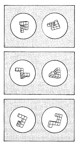 Shepard 와 Metzler (1971) 의 실험은 피험자들에게 <그림 3> 과 비슷한 블록모양의 쌍들을 제시하였다.