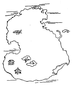 <그림 5> 심상주사에 관한 실험에서 Kosslyn, Bell 그리고 Peiser (1978) 가 사용한 지도의 복제. Kosslyn, S. M., Ball, T. M., & Reiser, B. J. (1978) 의 책에서 인용됨. 시각 심상들은 행렬적인 공간적 정보를 갖고 있다 : 심상주사에 대한 연구의 증거. Journal of Experimental Psycholgy : Human Perception and Performance, 4, 47 - 60. 미국 심리학회에 의해서 1978 년에 복사됨. 허가를 얻어 인용함.