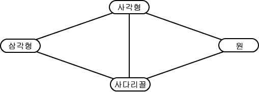 ³×Æ®¿öÅ©·Î Áö½ÄÀ» Ç¥ÇöÇÏ´Â °ÍÀº º¹ÀâÇÑ ¸¸Å ¸Å·ÂÀûÀÌ°í °·ÂÇÏ´Ù! ¾ðÁ¨°¡, Áö½ÄÀÇ ³×Æ®¿öÅ© Ç¥ÇöÀÌ Ç¥ÁØÀÌ µÉ °¡´É¼ºÀÌ ÀÖÁö¸¸, "ºí·¢¹Ú½º" ·çƾµéÀÌ ÀϹÝÀûÀ¸·Î »ç¿ëµÉ ¼ö ÀÖÀº ÈÄ ¶ó¾ß ÇÑ´Ù. Áö½Ä ³×Æ®¿öÅ©´Â µÎ°¡Áö Á¶°Ç¿¡ ±âÃʸ¦ µÐ´Ù. ù ¹øÂ° Á¶°ÇÀº, ³×Æ®¿öÅ©¿¡ ÀÖ´Â Áö½ÄÀÌ °èÃþÀûÀÌ ¾Æ´Ñ (non-hierarchical) ±×·¡ÇÁÀÇ ³ëµå·Î Ç¥ÇöµÈ´Ù´Â °ÍÀÌ´Ù : Æ®¸®¿Í´Â ´Þ¸® ³×Æ®¿öÅ©¿¡¼ ¸ðµç ³ëµå´Â °°Àº Á߿伺À» °¡Áö¸ç ¾î¶² ³ëµåµµ ½ÃÀÛÁ¡À¸·Î »ç¿ëµÉ ¼ö ÀÖ´Ù. µÎ ¹øÂ° Á¶°ÇÀº À¯»çÇÑ À¯ÇüÀÇ Áö½ÄÀº ¼·Î °¡±õ°Ô ±×·ìÁö¾îÁöµµ·Ï ³ëµåµéÀÌ ¹è¿µÈ´Ù´Â °ÍÀÌ´Ù : ±×·¯¹Ç·Î, ÀÌ¿ô ³ëµåµéÀº near-miss °ü°è¸¦ °®´Â´Ù. ¿¹¸¦µé¾î, ±×¸² 5 ´Â ±âÇÏÇÐÀû ¸ð¾çµé¿¡ ´ëÇÑ ³×Æ®¿öÅ©¸¦ º¸ÀδÙ.