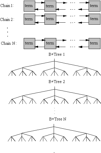 The external database stores data items in chains (rather than individually) so that related items stay together. For example, one chain might contain part numbers to a stock list, while another might contain customer names. Simple database operations, such as adding new items or replacing and deleting old items, do not require B+ trees. These come into play when you want to sort data items or search the database for a given item; they are covered in detail later in this chapter.
