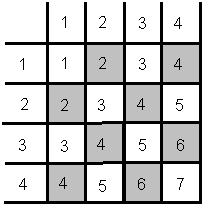When you view the chessboard with row 1 at the top and column 1 on the left side, Type 1 diagonals resemble the backslash (¡¬) character in shape, and Type 2 diagonals resemble the shape of slash (/). Figure 16.5 shows the numbering of Type 2 diagonals on a 4x4 board.